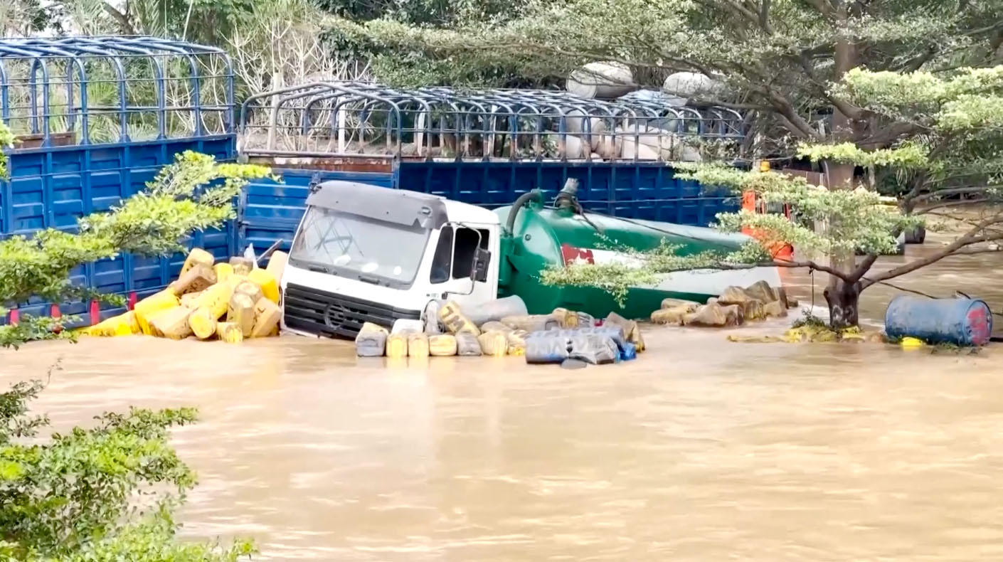 The Ndjili River, which runs through part of the city of around 17 million, overflowed its banks on Friday night, blocking the main national road and leaving drivers stranded since Saturday evening.