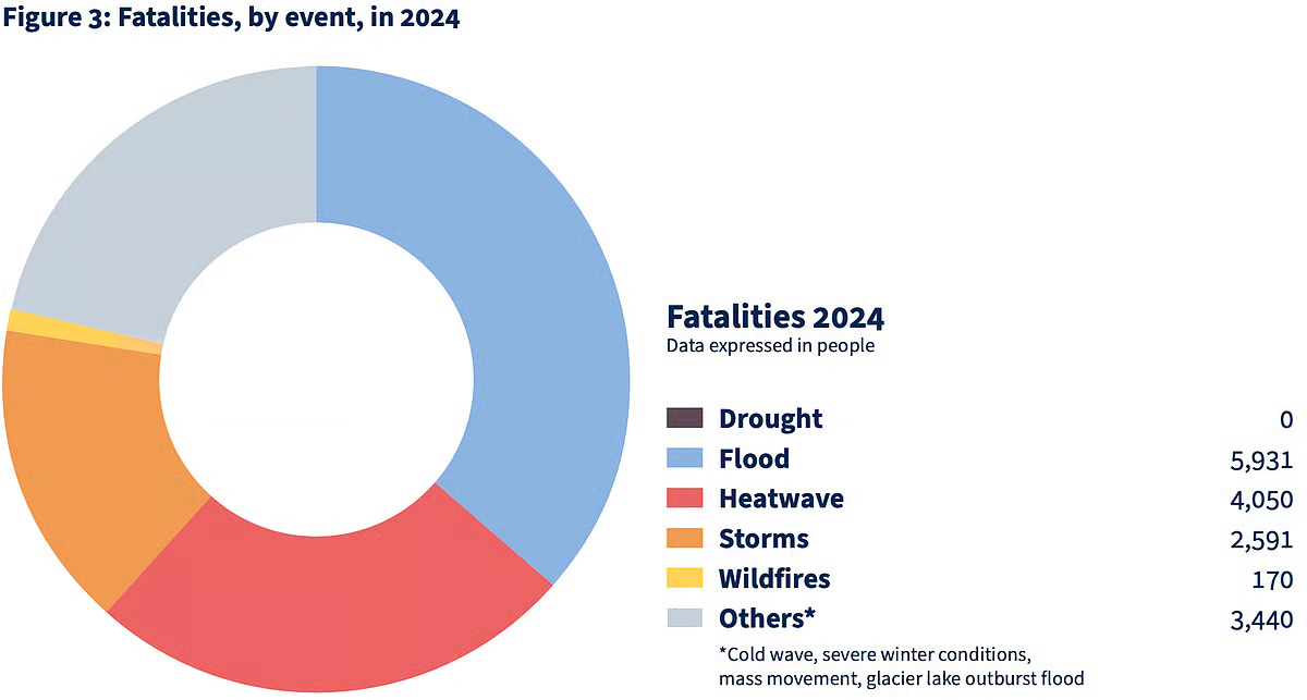 The report finds that the world has endured more than 9,700 documented extreme weather events since 1995. Of these, storms and heatwaves each caused roughly a third of all fatalities, while floods affected nearly half of those impacted. Storms alone accounted for 58 per cent of all economic losses, or about $2.64 trillion.