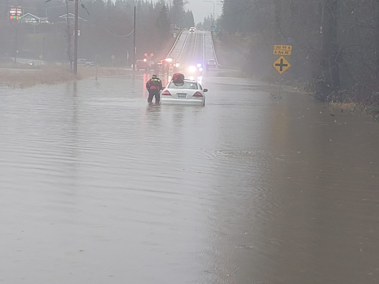 Fire crews recued 4 people from a flooded home on Monroe, Washington. Another person was rescued from a vehicle trapped in floods in Granite Falls, Washington, where at least 12 homes have been flooded.