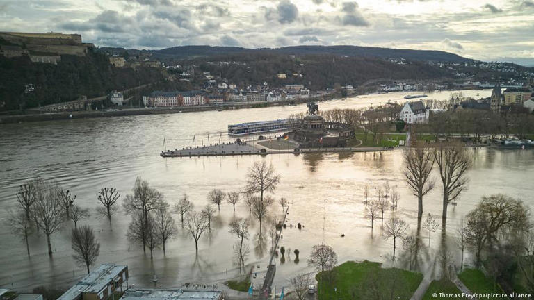 Koblenz, and particularly the "Deutsche Eck" ("German Corner") in the city center where the Rhine and Mosel rivers meet, was among the places where this was most visible on Tuesday.