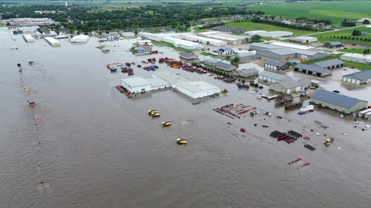 A drone view shows a flooded area following heavy rainfall in Rock Valley, Iowa on June 22, 2024, in this still image obtained from a social media video. Photo by Chris VB/via REUTERS