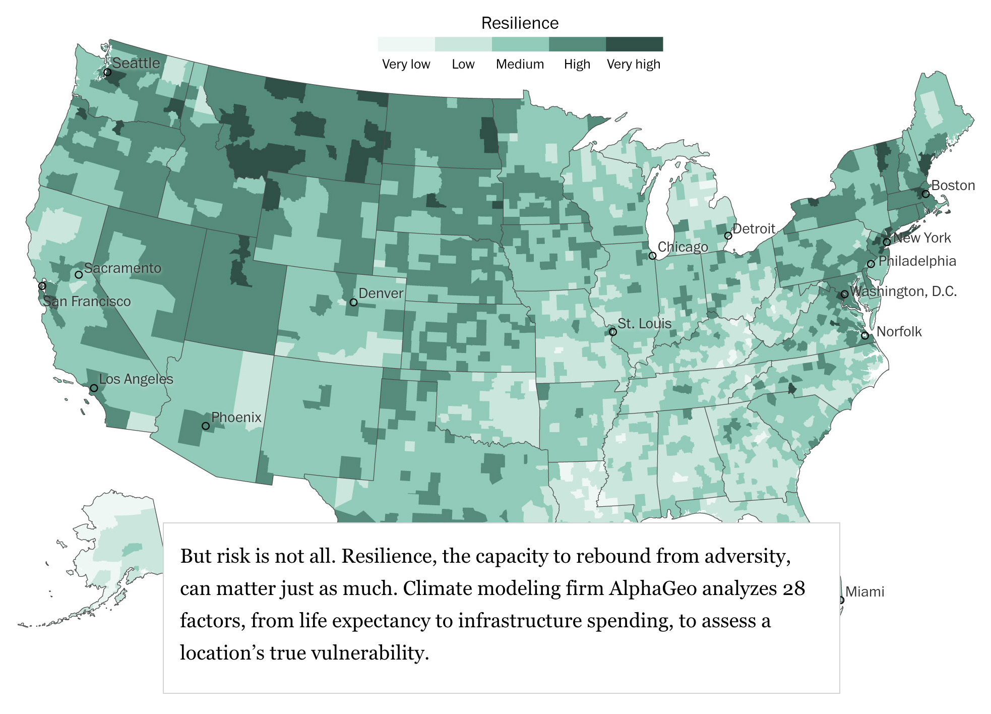 This is only a snapshot — and an incomplete one at that. The precise nature of resiliency will shift over time, as scientists collect more data about what factors matter most. But it’s one way people can glimpse the future of where they live.