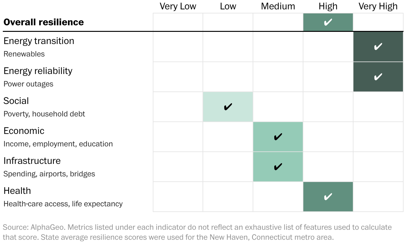Your city ranks high for resilience. Here’s a breakdown of the individual indicators: