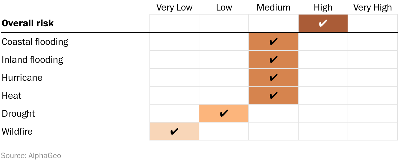 Your city ranks high for risk. Here’s a breakdown of the individual risks: