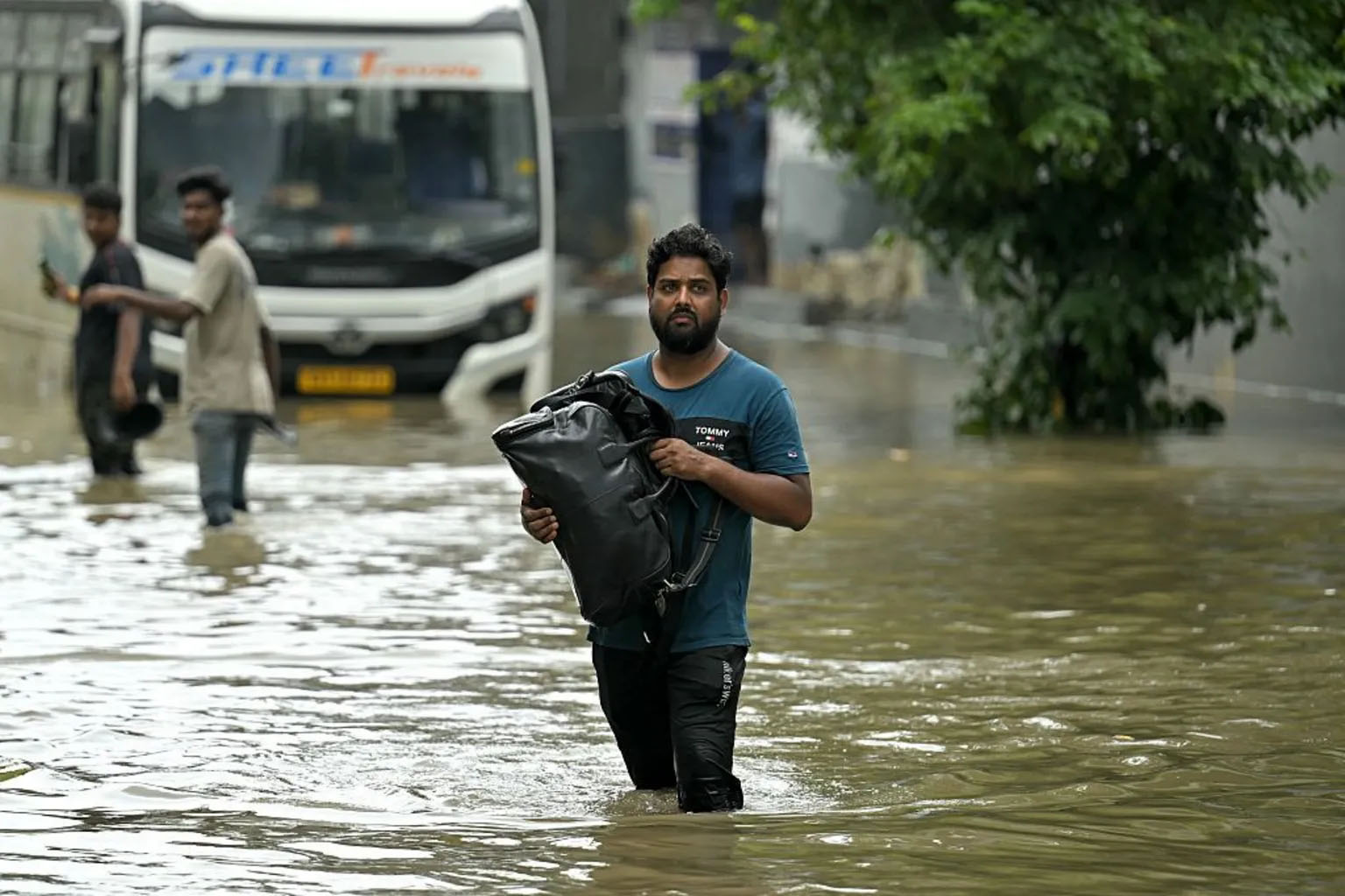 Videos also showed commuters wading through knee-deep water, with several cars parked on waterlogged streets. Water has also entered houses in some parts of the city.