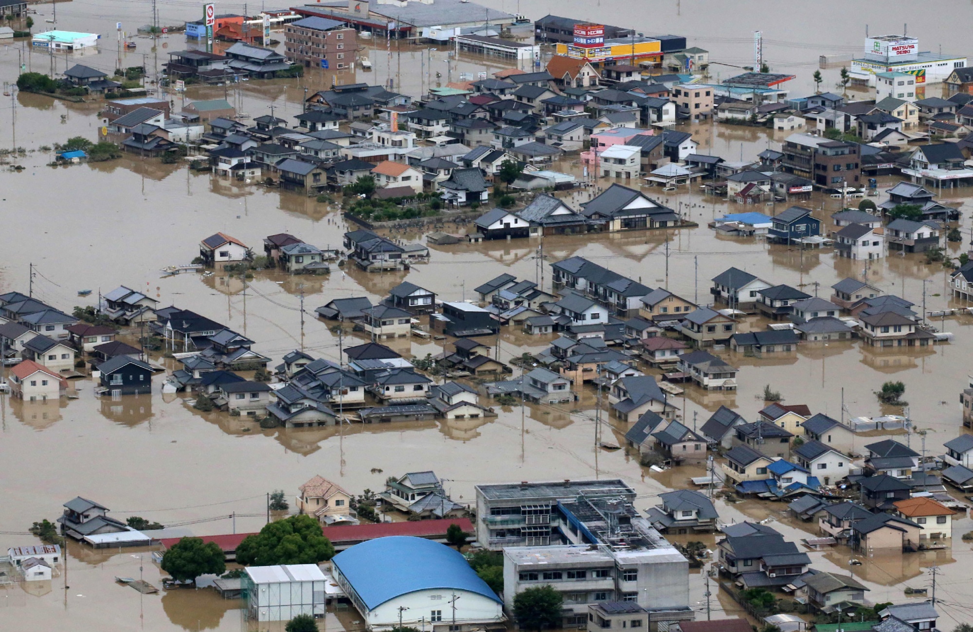 Flooded houses in Okayama, July 2018.Photographer: AFP via Getty Images