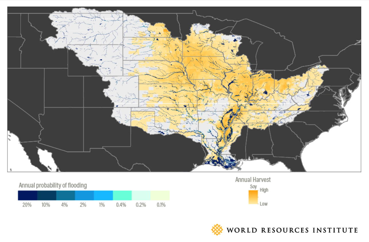 Flood risk in Mississippi River Basin Soy fields