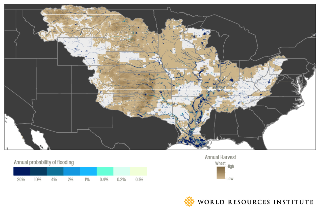 Flood risk in Mississippi River Basin Wheat fields