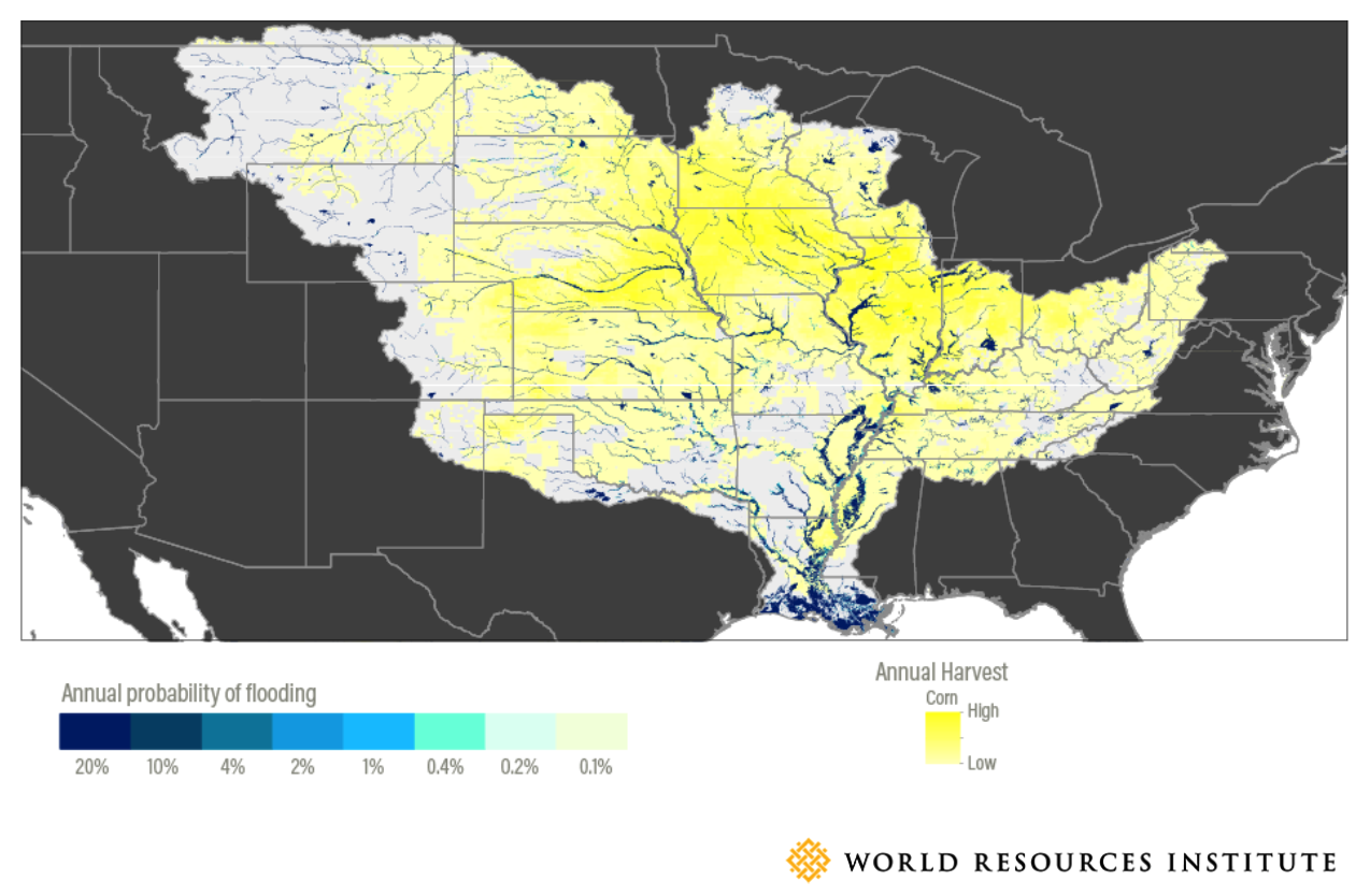 Flood risk in Mississippi River Basin Corn fields