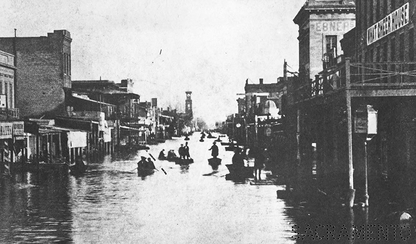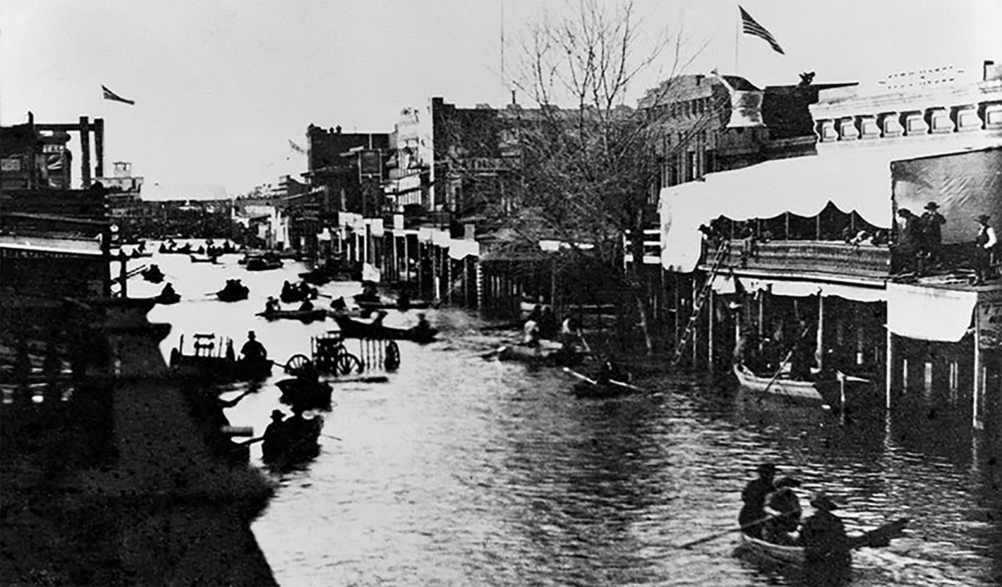Apart from economic losses, “the evolution of a modern society creates new risks from natural disasters,” Jones told me. She cited electric power grids, which didn’t exist in mid-19th-century California. A hundred years ago, when electrification was taking off, extended power outages caused inconveniences. Now, loss of electricity can mean death for vulnerable populations (think hospitals, nursing homes, and prisons). Another example is the intensification of farming. When a few hundred thousand cattle roamed the sparsely populated Central Valley in 1861, their drowning posed relatively limited biohazard risks, although, according to one contemporary account, in post-flood Sacramento, there were a “good many drowned hogs and cattle lying around loose in the streets.”
