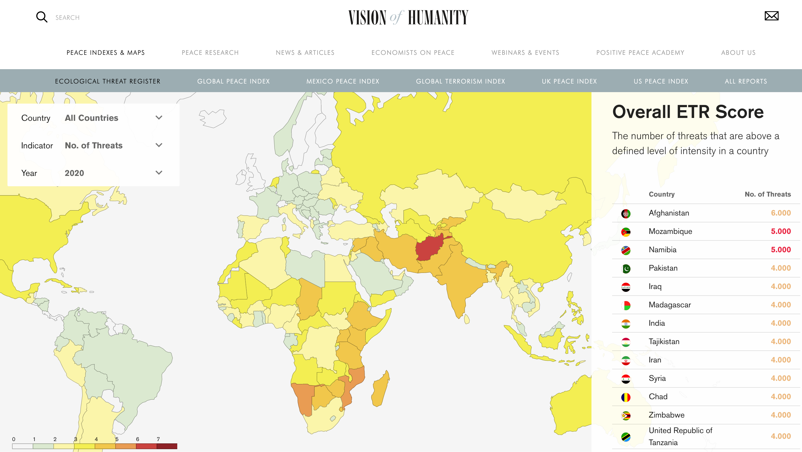 The Ecological Threat Register looks at risk from population growth, water stress, food insecurity, droughts, floods, rising temperatures, and rising sea levels and found that the next 30 years are going to be pretty rough for humanity. The 19 countries with the highest number of threats and have a combined population of 2.1 billion people, or 27% of the world’s total population. Read that slowly, one more time: