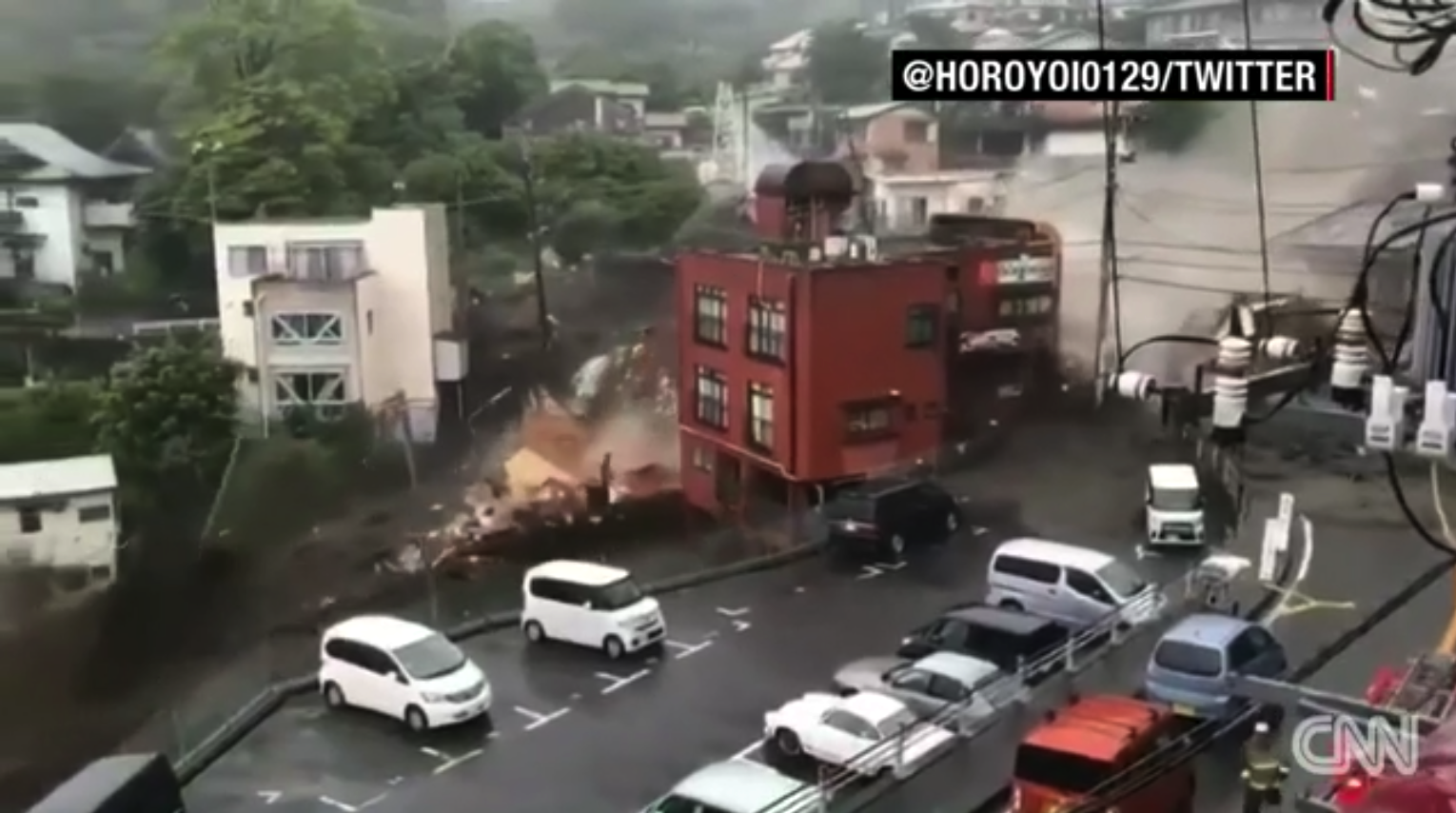 The giant mudslide in Atami, Shizuoka prefecture, which occurred around 10:30 a.m. local time, came after parts of the region was hit by torrential rain.