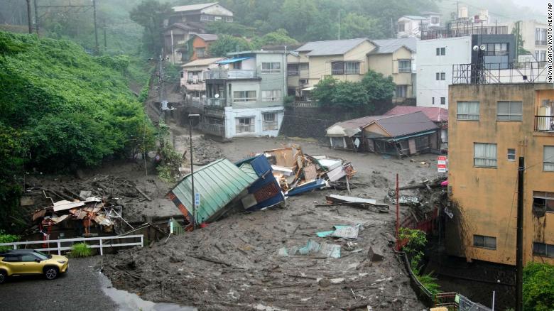 Tokyo, Japan (CNN)At least two people are dead and some 20 people are missing after a mudslide swept across a seaside city around 60 miles southwest of Tokyo, sweeping away homes amid Japan's rainy season.