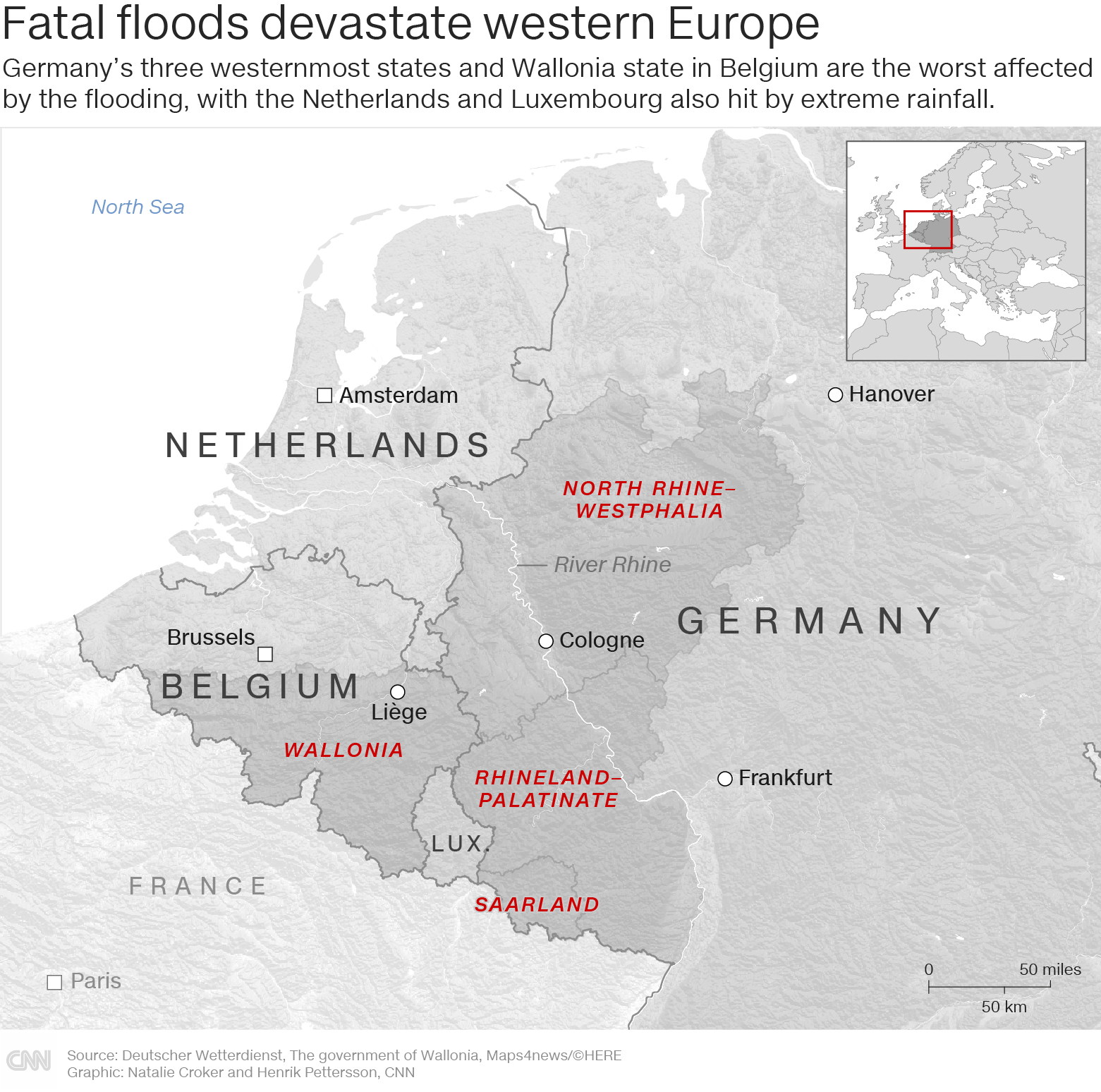 The flooding, caused by unprecedented rainfall, has hit parts of western Germany before shifting to neighboring Belgium and the Netherlands.