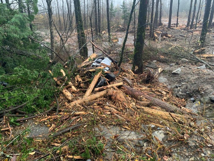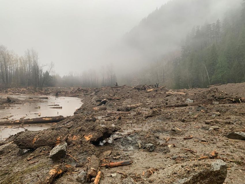 Tons of mud slid down the steep slopes next to a busy highway in Agassiz.