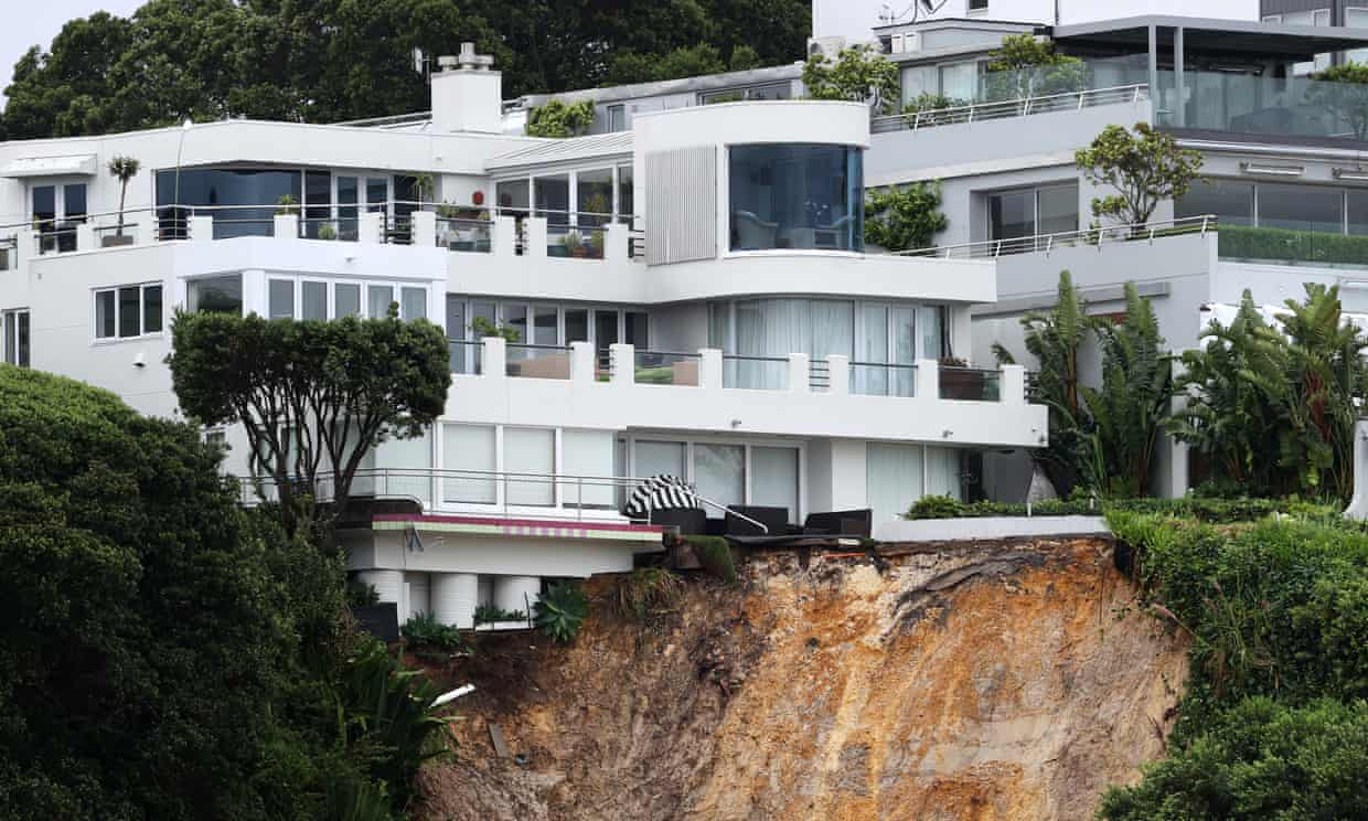 Landslides and sinkholes still threaten homes. Three people were taken to hospital on Wednesday afternoon – two of them seriously hurt – after a house in Orua Bay, a rural Auckland township, crashed down a bank on to the beach, trapping one person inside.