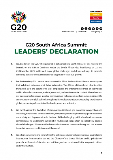 G20 South Africa Summit: LEADERS’ DECLARATION