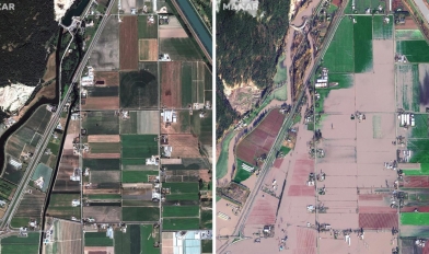 Before-and-after satellite images show flood devastation in B.C.'s Sumas Prairie